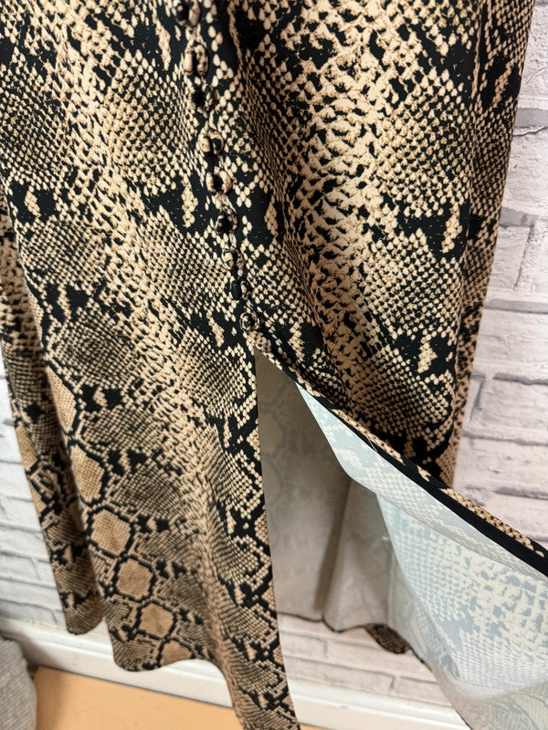 Zara Python Snake Print Midi Skirt Button Front Slit Animal Print Size Small UK 8/10